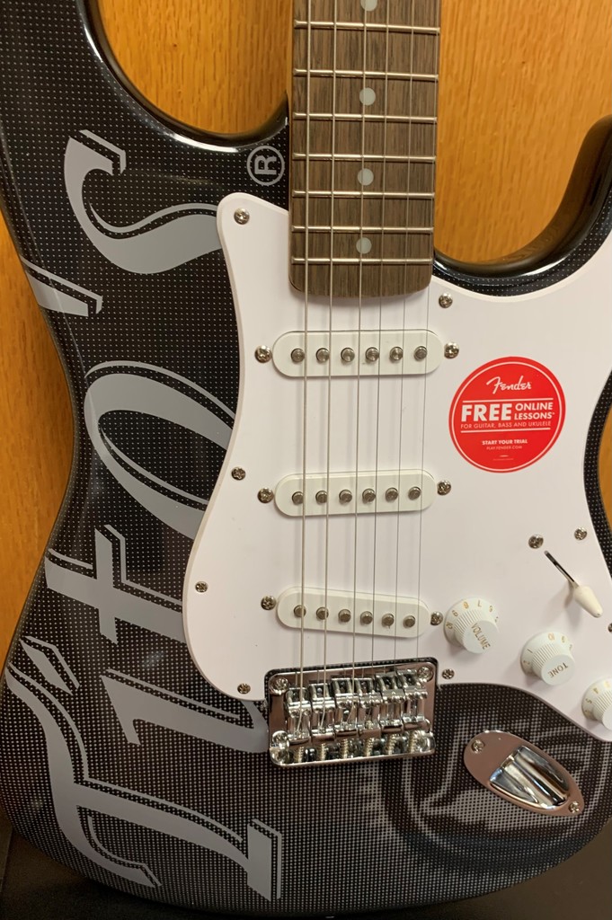 Rock on with this Fender Squier Stratocaster six string electric guitar emblazened with the Tito's insignia! Comes with a Fender Play free trial where you can unlock a personal path to thousands of songs and skills to match your style.