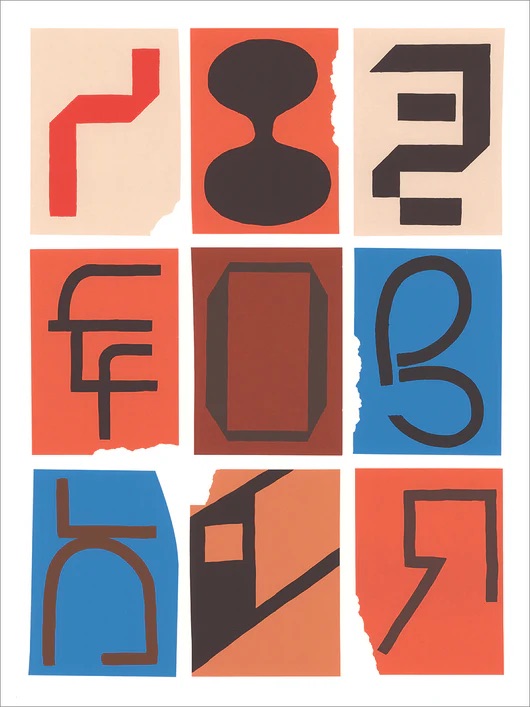 ?Color Grid? originates from my ongoing drawing practice of simple geometric forms on found paper. This piece reinterprets multiple drawings into a grid, utilizing the print process for bold color relationships. Torn edges of the grid counter the hard-edged forms that are imposed upon them, creating a tactile visual experience.