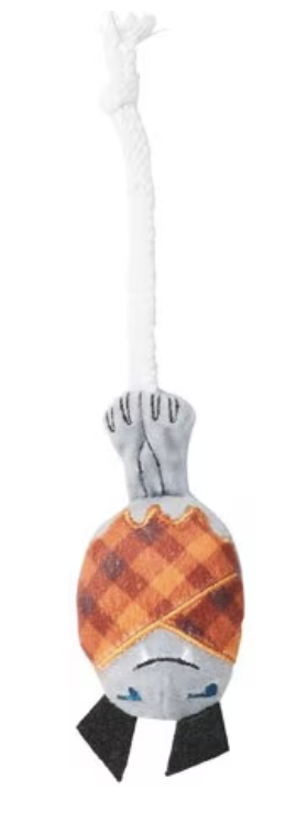 Crinkle paper in the body that?ll make some noise in the night, and the dangling braided legs are perfect for your kitty to play around with.
