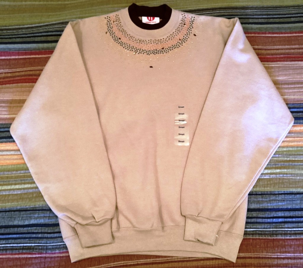 Pretty fall embellished pullover sweatshirt. Size small, but could fit medium. Measures 20 inches under arms. 29 inch back length. 50 percent cotton/50 percent polyester.