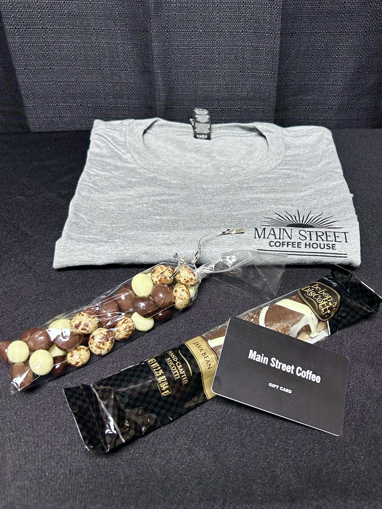But first, coffee! Now BREW can rep your Mainstreet Coffee merch while sipping on a cup of coffee and eating your biscotti. I promise you'll like it a latte!