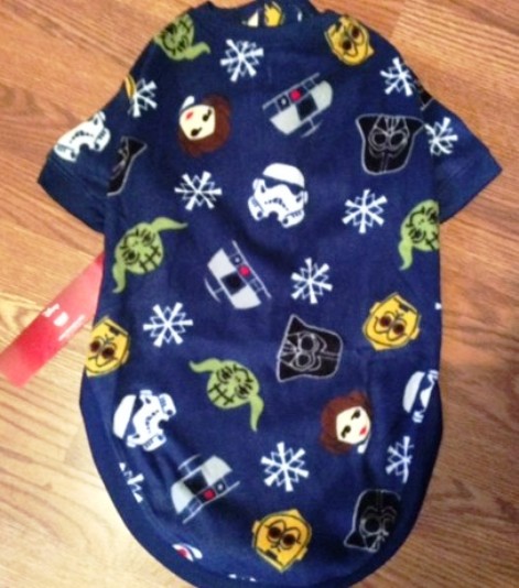 Celebrating the classic film, Christmas style. The microfleece pajamas feature iconic characters from the original movie, mingling with snowflakes. Size large, measures 25 inches long with a girth of approximately 27 inches.