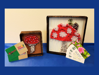 Celebrate the beauty of nature with this charming basket! Featuring handcrafted large and small mushroom string art pieces by High Strung by 3M, this set brings a whimsical touch to any space. Immerse yourself in the wonders of the QC Botanical Center with four passes, then enjoy a delicious meal with two $25 gift cards to Arthur?s Garden Deli. A perfect gift for nature lovers and those who appreciate a cozy, organic vibe!