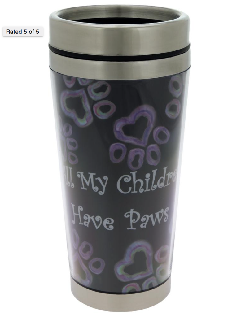 Sure, your morning routine may not include taking the kids to school, but you still share a harried schedule with your furry loved ones. This convenient travel mug understands, covered in rainbow paw prints and the phrase "All My Children Have Paws."