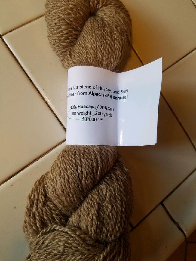 We are excited about offering our custom made beautiful suri/huacaya blended yarns which come from our own alpacas raise in El Dorado County, California. at Alpacas of El Dorado.