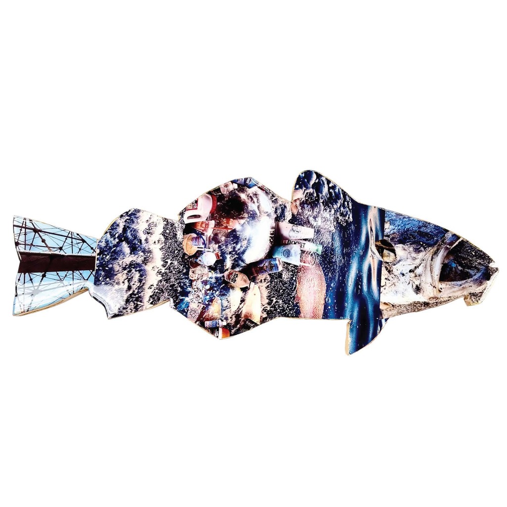 A dead fish I photographed near disposable cups at a local beach inspired 'Codlution.' Its head is featured here, as well as Marblehead's lighthouse as the tail - a reminder that plastic pollution in our oceans devastates marine ecosystems everywhere and that we are all impacted.