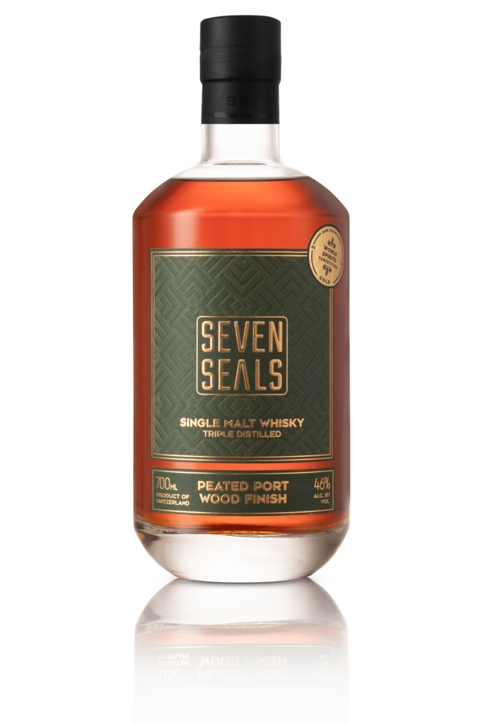 Our Seven Seals Peated Port Wood Finish has a remarkable Peat-smoke note. Subtle, yet multi-layered in the nose, this single malt makes you crave for more. The palate is defined by the distinctive flavor of peat smoke, embedded in full-bodied aromas of dried fruits such as raisins with accents of honey and oriental spices.