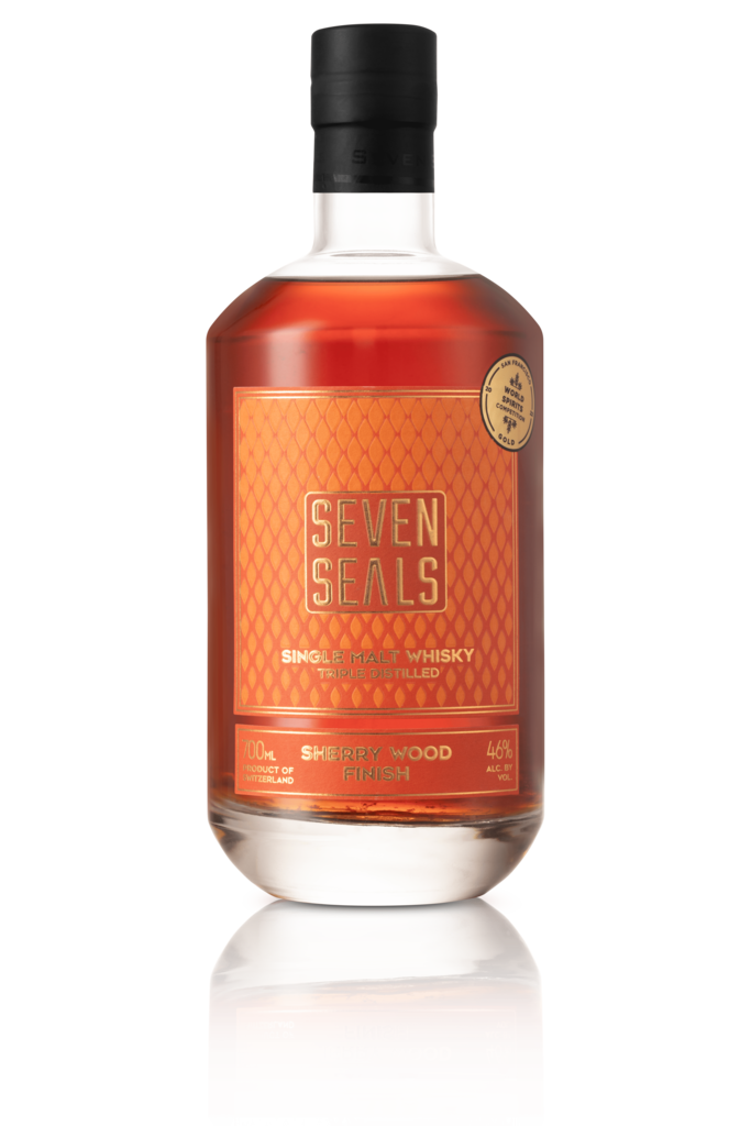 Our Seven Seals Sherry Wood Finish is reminiscent of a walk across a county fair. Scents of toffee, gingerbread, roasted almonds, candy, and Christmas spices immediately rise to the nose. On the palate, these flavors combine in a harmonious way and develop long-lasting toffee and nut aromas. It finishes with a hint of orange.