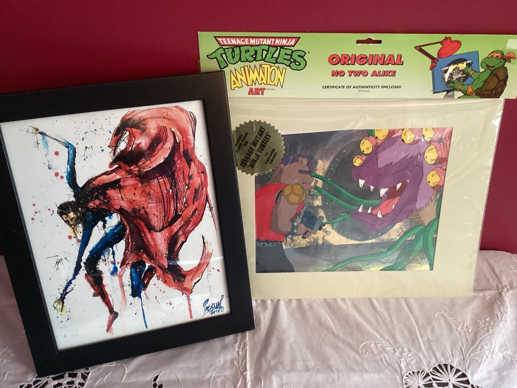 1) Signed print by famed Artist Geoff Pascual, 1) VINTAGE Turtles TV Cartoon, sealed.