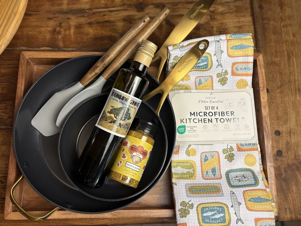 This basket of goodies includes the following items to help you in the kitchen with your next meal: