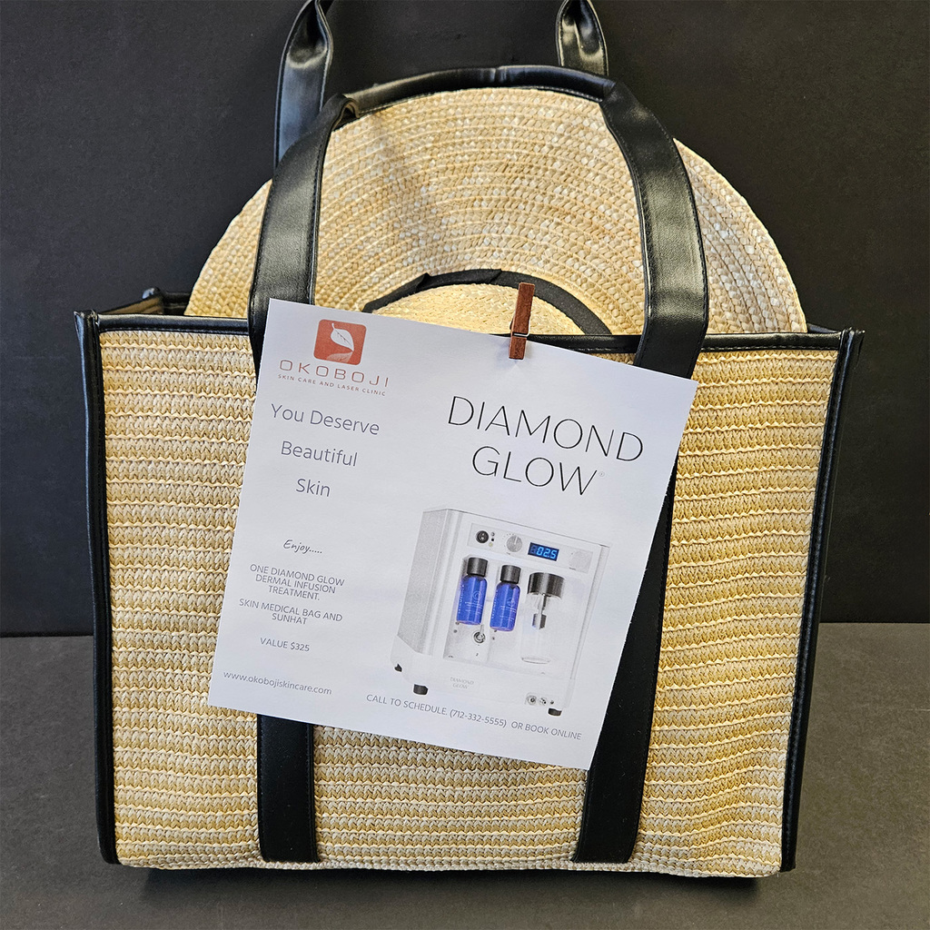 Treat yourself to radiant, glowing skin with Okoboji Skin Care! This package includes one luxurious Diamond Glow dermal infusion treatment, a stylish skin care medical bag, and a sunhat to keep you glowing safely in the sun.