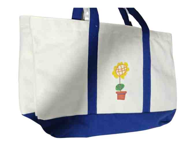 What makes this tote extraordinary is its heartfelt design. On the front, vibrant children’s artwork showcases a cheerful sunflower, symbolizing growth, resilience, and the joy that flourishes through Head Start programs. On the back, the Kai Ming STEP logo proudly honors the organization’s decades-long commitment to serving children, families, and communities.