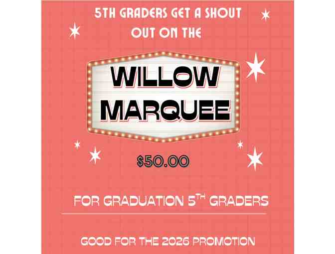 Get a 5th Grade Promotion shout out on the Willow Marquee the week of Promotion!