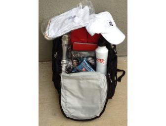 Showtime themed backpack, filled with dvds, t-shirts, caps, travel mugs, water bottles and much more.