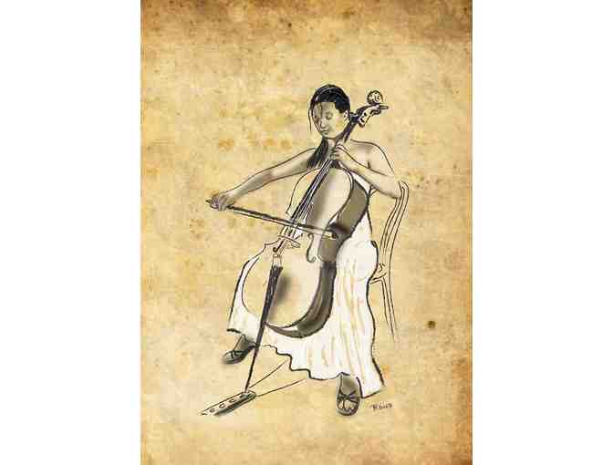 "Cellist" by Artist Bhavna Bhen: 12x9" Canvas!