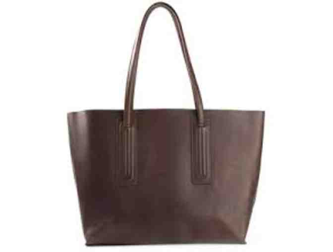 Rick Owens Dark Dust (brown) smooth leather large big shopper tote. Waxy leather interior; one zip pocket and three slip pockets at interior. Rolled leather top handle and open top.