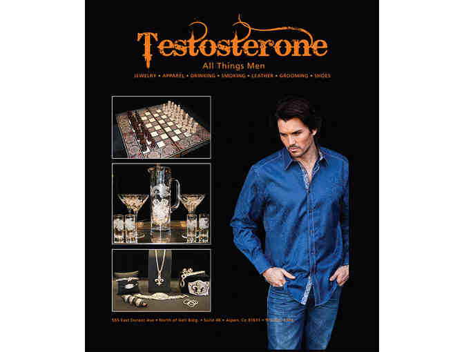 At Testosterone you will find hip apparel brands like Bertigo, Zagiri, Bogosse, Affliction, Age of Wisdom, Kippys, Salence, Howe, and more! Accessorize with Bill Lavin belts, Night Rider buckles, hats from Carlos Santana and Biltmore. Check out the extensive line of Paulson poker chips forged in Las Vegas, custom poker cases from Tampa Bay, FL., one of a kind pool cues and balls, and chess and backgammon boards imported from Syria.