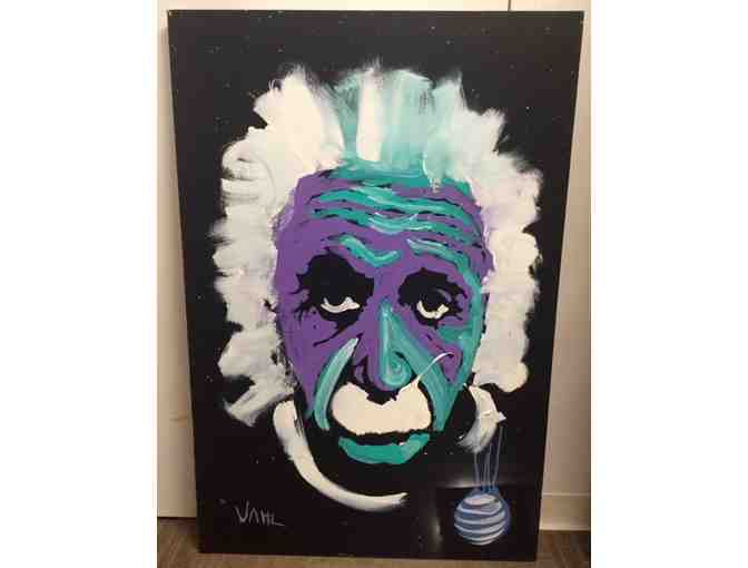 As an internationally recognized graffiti artist and a #1 best-selling business author, Erik Wahl redefines the term keynote speaker. Pulling from his history as both a business strategist and an artist, he has grown to become one of the most sought-after corporate speakers available today. Erik created this Albert Einstein painting for our Officers and Senior Leaders at AT&T Universitys Leading with Distinction conference in Dallas. It is approximately 32-in. wide by 48-in. tall and is autographed by the artist. We cannot ship this item. It is only for local pick up in Dallas.
