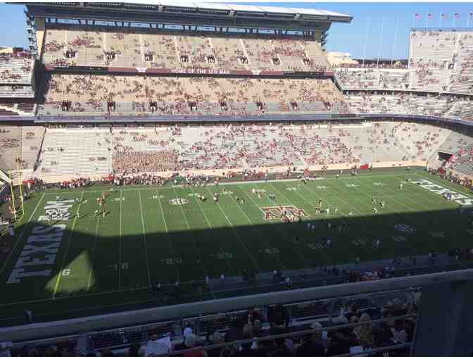 Watch the Texas A&M Aggies square off against the New Mexico State Aggies on October 29 at Kyle Field with two front row tickets in section 407. Section 407, Row 1, Seats 10-11 are located between the 10 and 15 yard line on the most desirable west side of the stadium. The pair of tickets have a total face value of $120, and similar tickets are listed at $140 per pair on Stubhub. Enjoy late afternoon and evening shade along with the extra leg room afforded by these tickets. No one can stand up to block your view when sitting in the front row. See vantage point in the attached photo.