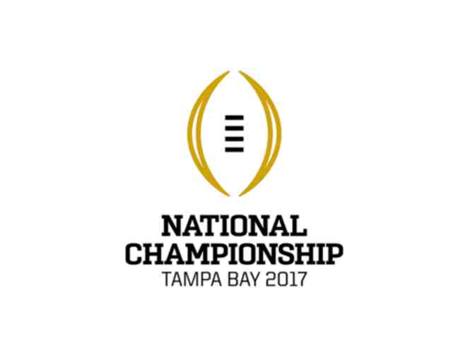 2 tickets to the College Football National Championship Game in Tampa, FL onMonday, January 9, 2017300 Level tickets between the 20 yard lines (1st 10 rows)Pre-game hospitality 3 hours before the game$50 merchandise couponOfficial game program or program voucherAny travel related expenses are the responsibility of the winning bidder