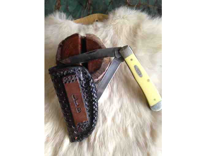 My item for this auction is a handmade leather sheath (knife not included). I make these items start to finish in my spare time in my home shop. This sheath is made for a Case Trapper folding knife.