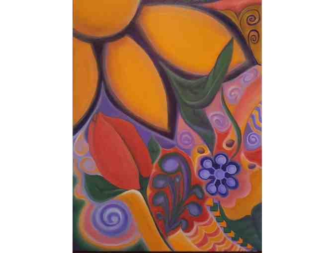 18x24 on canvas, original painting by Melissa Stein (AT&T employee). Perfect for childrens bedroom, playroom, Pediatrician office, sun room, to add a cheerful vibe to any room! See Flower Frolic submission for a complementing addition to your bid.