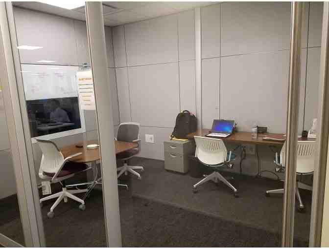 Location, location, location! This highly desirable office space is just steps away from several varieties of premium coffee, and the winner will enjoy unlimited Coffee Rights for the entire week. This modern facility underwent extensive renovations in 2013. Currently functioning as a "Quiet Room", it has two doors that can be closed for uninterrupted concentration or privacy, or left open for maximum ventilation and to encourage collaboration.