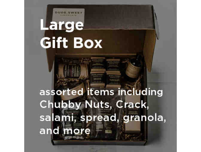 ?Dude, Sweet Chocolate is an artisan chocolatier with four locations in the Dallas/Fort Worth area specializing in exotic dark chocolates combined with unexpected ingredients. This gift box includes specialties Chubby Nuts, Truly Chocolate Granola, Crack in a Box or Fruity Crack or Hippie Crack, Tub of Hazelnut Spread or Tubby Elvis Spread, Chocolate Salami, and 5 more temptations. Total weight is 96oz.