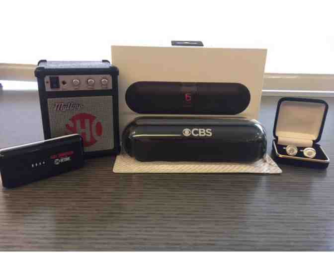 ?Beats pill speaker; CBS cuff links; Showtime Roadies speaker and portable charger