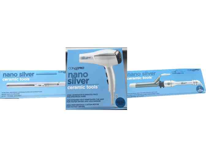 Bid on a dynamic trio! New Conair Pro Nano Silver series styling tools. Set includes: