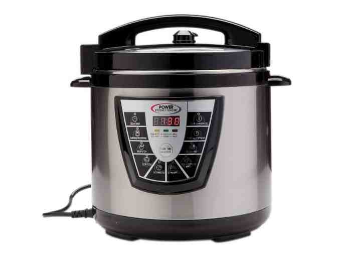 ?Power Pressure Cooker XL 8 Quart, Digital Non Stick Stainless Steel Steam Slow Cooker and Canner -- Pressure Cooker weighs 17 pounds, product dimensions are 15.3x14.1x14 inches. Prepare your favorite slow-cooked recipes 70% faster and make one-pot meals with a mere touch of a button with the Power Pressure Cooker XL. Features flavor infusion technology to lock in flavor and nutrients for delicious and healthy cooking results. Ideal for canning fruits, vegetables, and more.