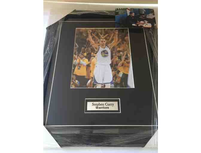 He shoots! He scores! He celebrates! The Golden State Warriors worked 40 years to repeat as NBA champions, but you don't have to wait that long to own this autographed photo of 2015 NBA Finals MVP Stephen Curry! Protected by a white mat and black frame, this photo is a great addition to any sports collection. As an added bonus, this package includes a 4"X6" (size) color print of Curry during an autograph session. This one is sure to be especially popular with Warrior fans, or anyone interested in the NBA.