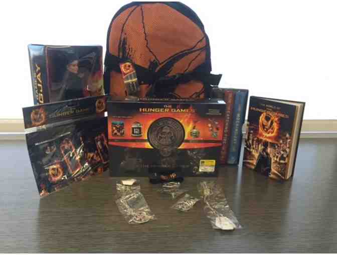 ?Hunger games backpack filled with Blu-ray gift set; Katniss Barbie Collector Doll; the World of the Hunger Games book; The Hunger Games Trilogy book set of 3; Hunter games jewelry set