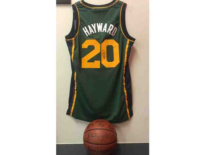 Authentic Utah Jazz Jersey signed by Gordon Hayward, with team signed basketball