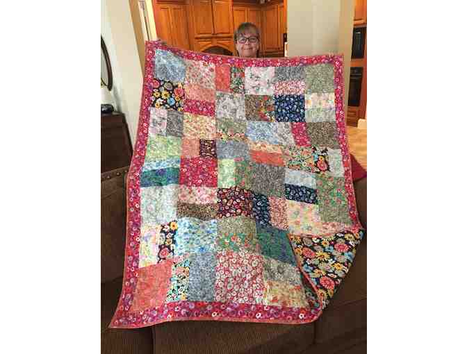 Liberty of London fabrics large lap quilt approximately 50" x 65". Cut, pieced, quilted and finished by Kate Thompson. On the lighter side: perfect for spring, summer and early fall.