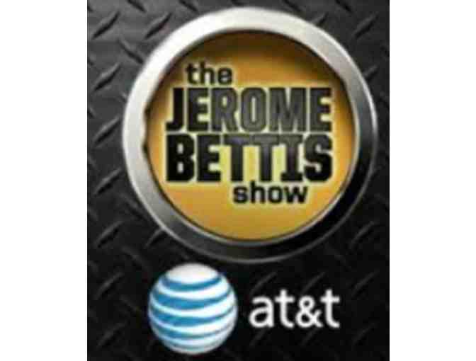1 bidder and 5 guests will attend a live taping of WXPI's Jerome Bettis Show presented by AT&Tand enjoy Jerry's company and catering at the TV station. Date TBD.