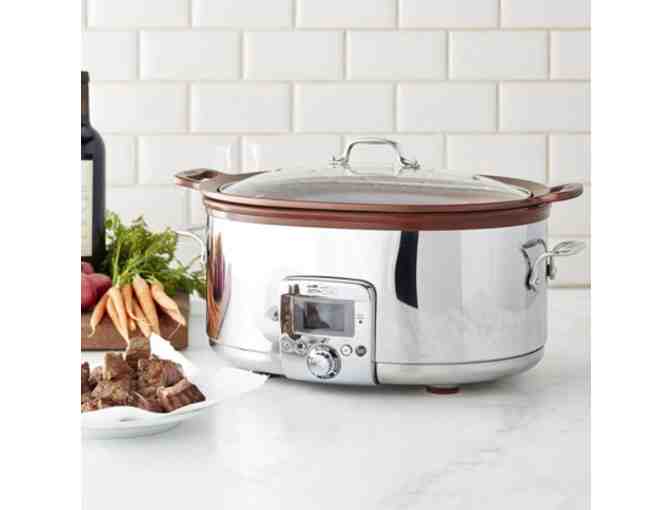 - Removable 7-qt. nonstick aluminum insert goes from slow cooker to table.