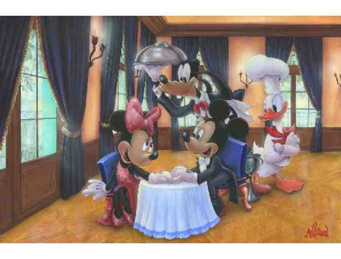 This wonderful limited edition Disney Fine Art canvas by James C. Mulligan shows Mickey and Minnie being served food by Goofy and Donald Duck.