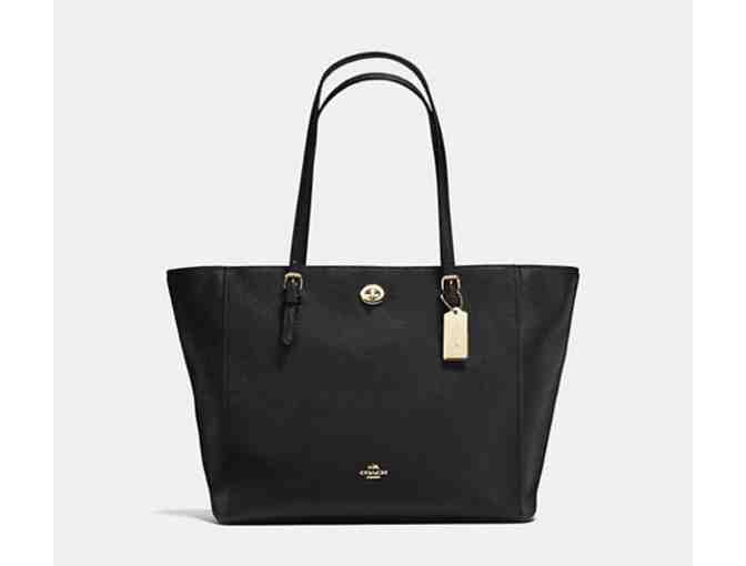 Turnlock Tote in Crossgrain Leather (Light Gold/Black)
