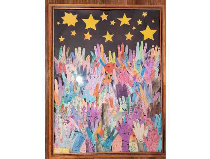 The final art project is framed and has second grade hands reaching high for the stars!