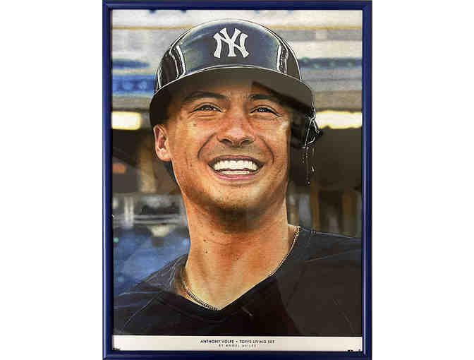 Framed sports card reproduction of Anthony Volpe of the New York Yankees, by Angel Aviles, 12” x 16”