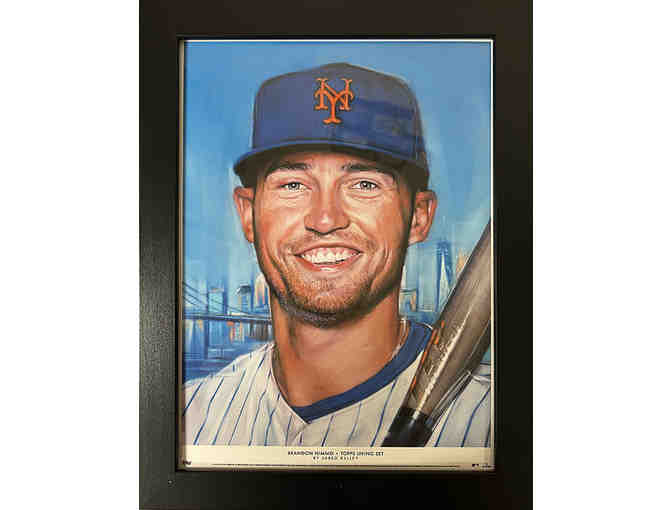 Framed sports card reproduction of Brandon Nimmo of the New York Mets, by Jared Kelley, 12” x 16”