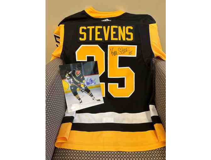 The winning bidder will receive a signed Kevin Stevens jersey and photo. They are authentic and Certificate of Authenticity is included.