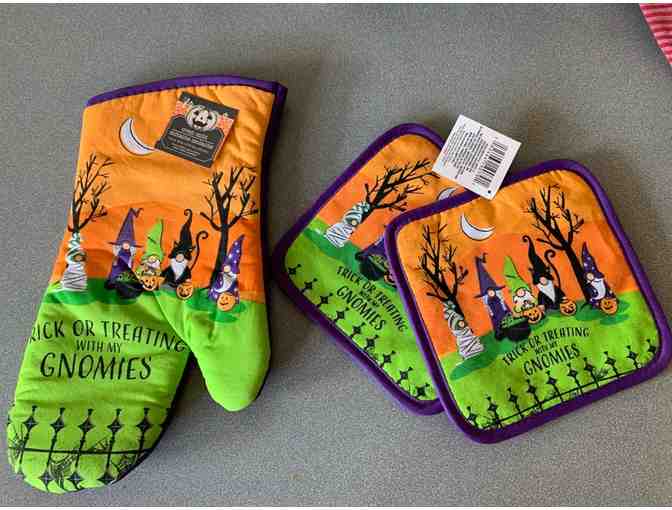 Trick or Treating with my Gnomies - Pot holder and Oven Mitt set