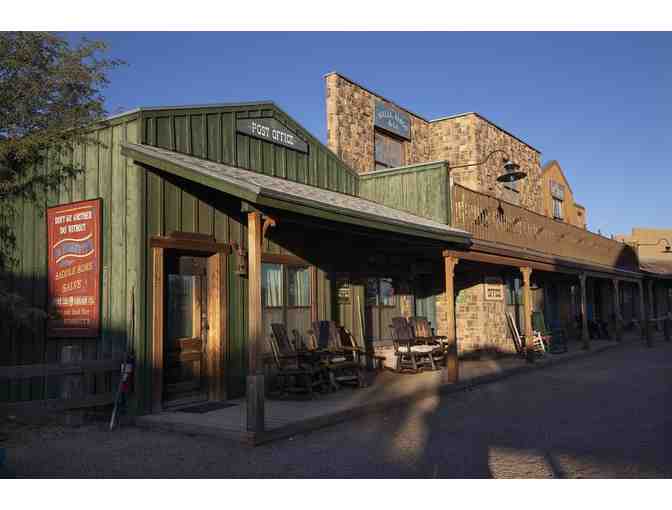 A certificate for two night stay at the Arizona ranch of your choice (White Stallion Ranch in Tucson, Rancho de la Osa in Sasabe, Kay El Bar Guest Ranch in Wickenburg, or Tombstone Monument Ranch in Tombstone) and breakfast for two guests.