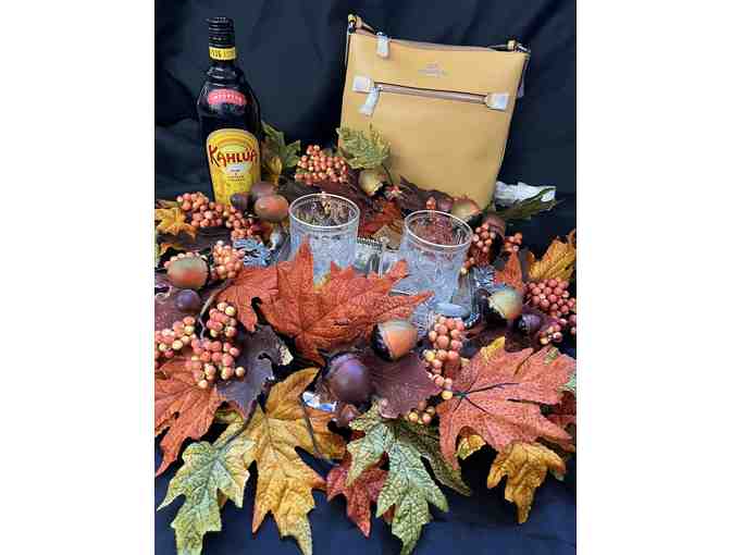 FALL DELIGHT. The best bundle to kick off Fall season. This item includes a set of glasses to use while you enjoy your Kahlua (Rum & Coffee), a Coach Bag in the color yellow for your closet, a vintage ware set for your kitchen, and fall autumn wreath for your home.