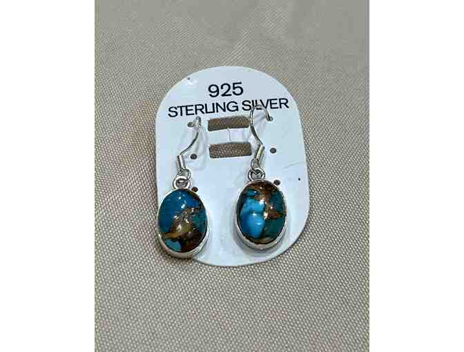 Sterling silver dangle earrings with blue and brown stone