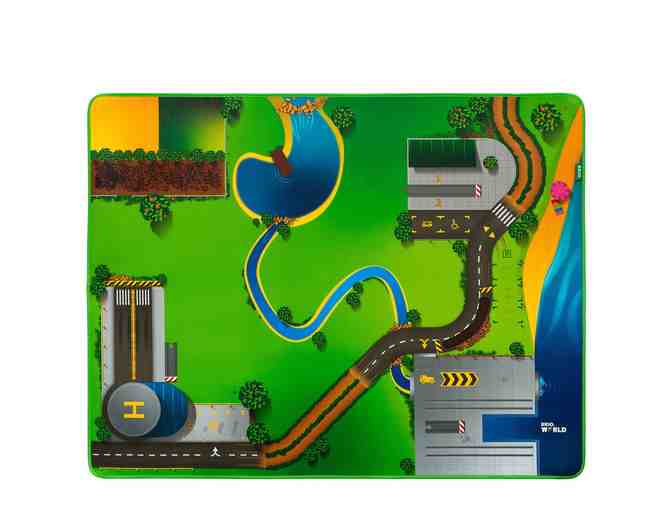 Fun and colourful BRIO World themed play mat that's ideal for open-ended train set designs and classic vehicle play. Features an airport, farmland, harbor scene and countryside spaces.