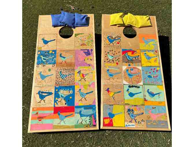 Add a special touch to your backyard games with this unique set of handcrafted cornhole boards, featuring original artwork created by the talented students of Mrs. O’Connell’s class. Each board showcases vibrant, hand-painted roadrunner designs, bringing together creativity, collaboration, and craftsmanship. These boards are not only a functional game set but also a stunning work of art that captures the spirit of young artists. Perfect for family gatherings, school events, or as a cherished keepsake, this custom cornhole set is built to last and designed to impress. Bid now for a chance to take home this meaningful and fun piece!