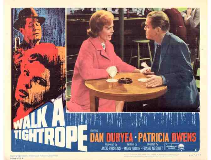 Walk a Tightrope, the 1964 Frank Nesbitt U.S./British romantic crime thriller starring Dan Duryea, Patricia Owens, Terence Cooper, Richard Leech and Neil McCallum.